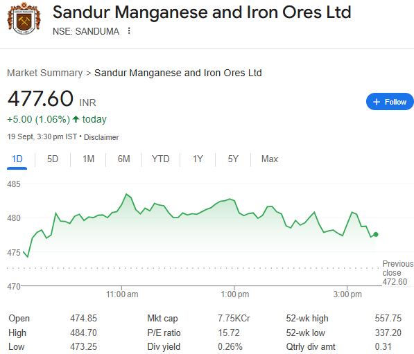 Sandur Manganese mining sector లో ఒక established player — మేటి market presence తో. ఇక్కడ ముఖ్యమైన వివరాలు: