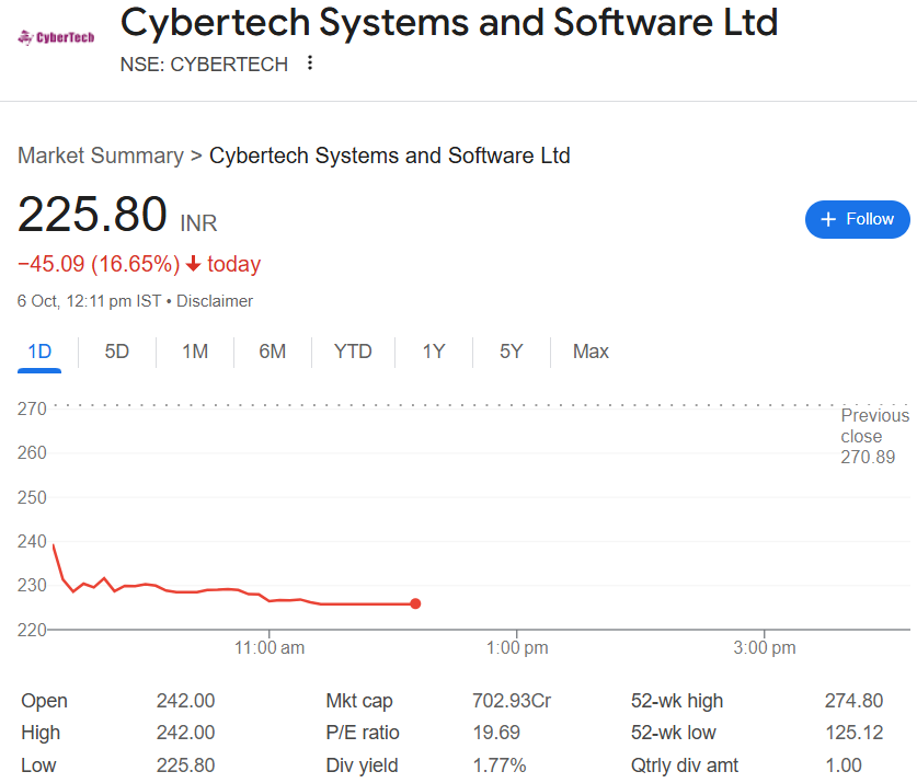 | CyberTech Systems & Software Ltd | Special Dividend – Rs 20 | 06 Oct 2025 |