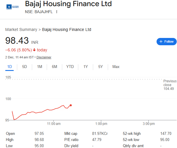 మొత్తం మీద, ఈ decline panicలో అమ్మేశేయాల్సిన type కాదు. ఇది mostly pre-planned promoter action వల్ల వచ్చిన short-term reaction మాత్రమే. Bajaj Housing Finance share price ప్రస్తుతం low levelsలో ఉన్నా, fundamentals strong గా ఉండటం పెద్ద plus point.